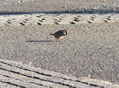 こんなかわいいスズメが、聖地のまわりでくつろいでいました。